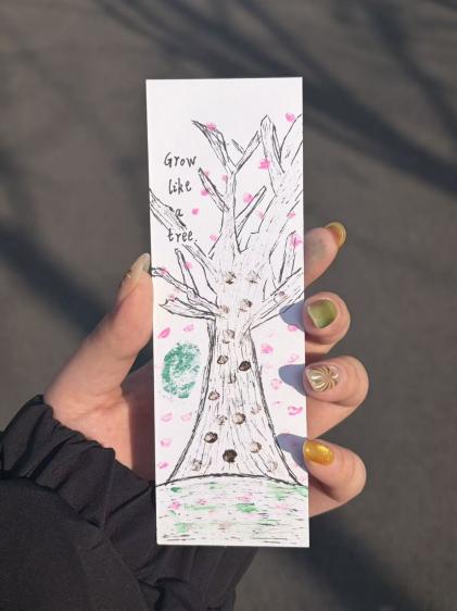 活动伊始,活动负责人向参与者介绍本次活动流程,希望参与者能在活动中悉心参与,用心关注植树节氛围。随后,活动负责人向参与者发放纸签,让参与者用黑笔完成树根的描画,最后在进行颜料的盖章。活动现场参与者们发挥自己的奇思妙想,使用画笔和颜料绘制出多样的植树节氛围书签,富有教育环保寓意。